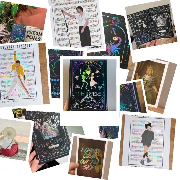 Fresh Foils was created when Jessica’s tendency to explore new hobbies every month led her on a shiny path towards trying out foiling! This hobby led to many hours of creating prints for our home as well as making custom prints for friends and family. As we discovered it was something that we both really enjoy, we decided to go all in on creating a small business and Fresh Foils was born! Jessica (self proclaimed ‘Lead Foil Technician’) brings her creativity and sassy personality into our designs and Keenan, having a background in digital helps with the website and the logistics of running the business.